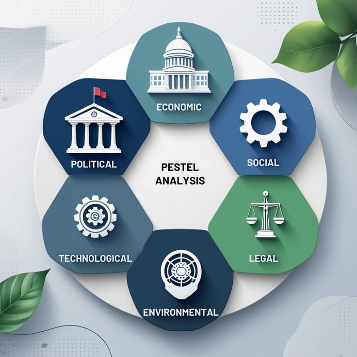- Political (سیاسی): قوانین، سیاستها و تصمیمات دولتی که بر صنعت یا بازار تأثیر میگذارند (مانند تغییرات مالیاتی، سیاستهای تجارت خارجی، ثبات سیاسی).